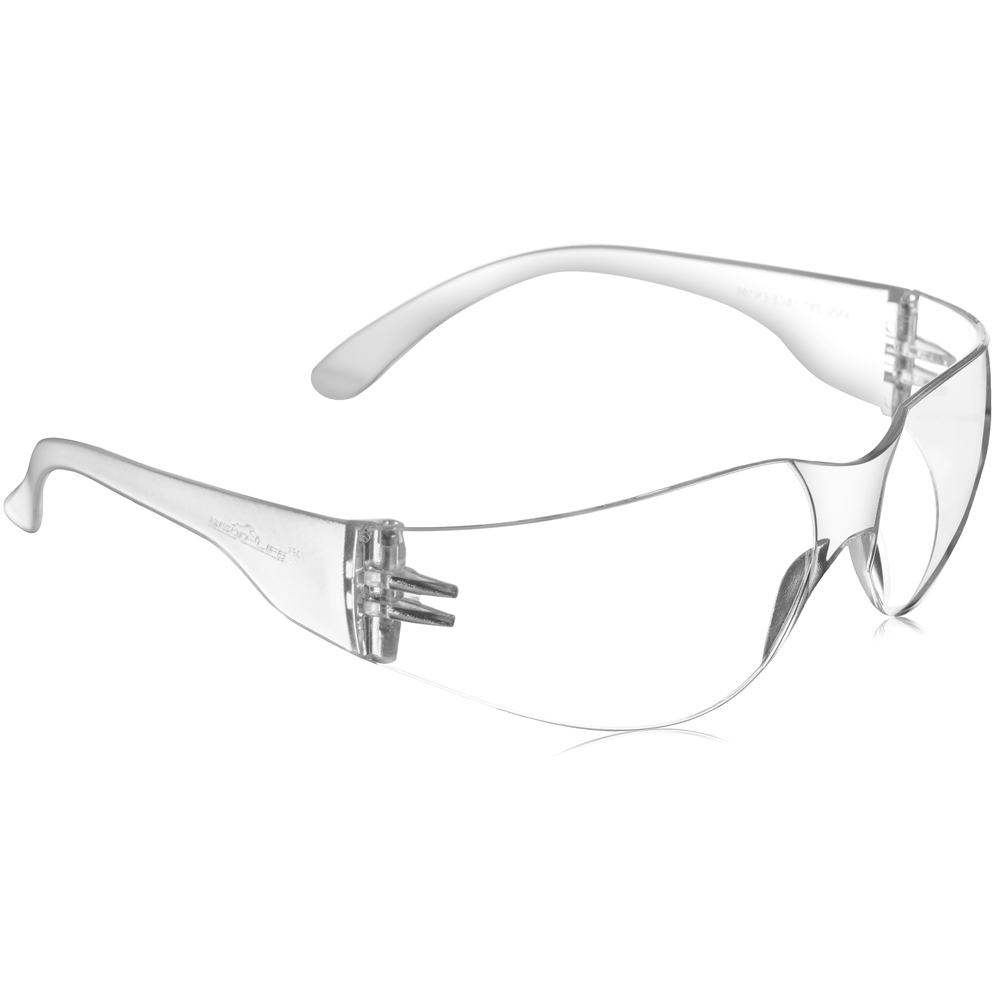 Safety Spectacles with single piece polycarbonate lens with Anti-scratch coating.